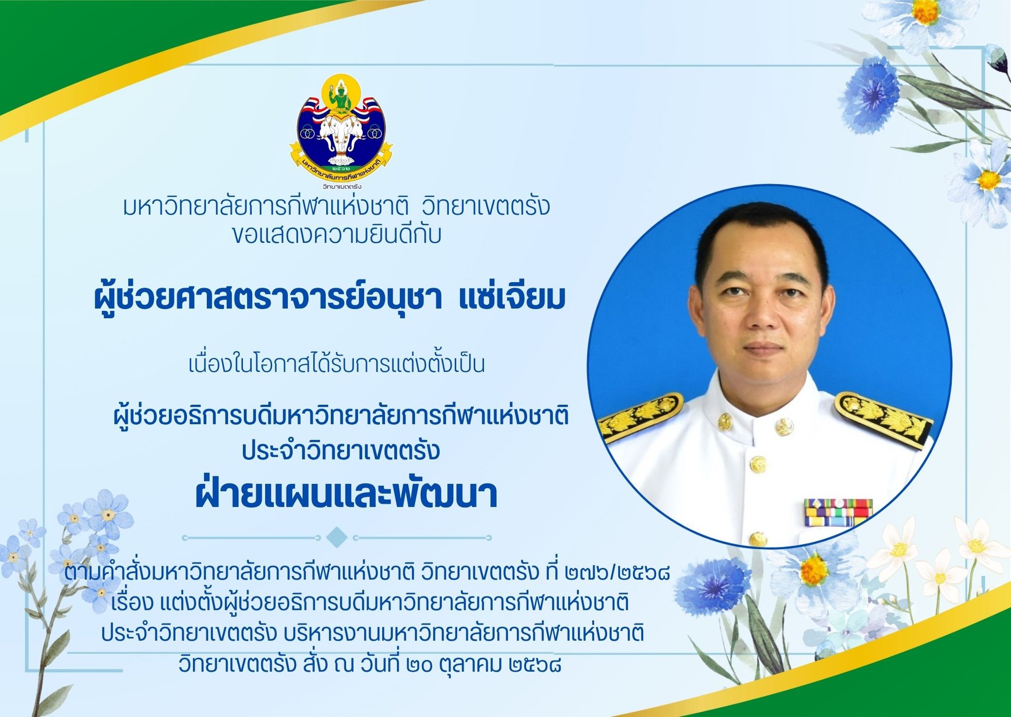 เนื่องในโอกาสได้รับทุนเงินอุดหนุนเพื่อการวิจัยมหาวิทยาลัยการกีฬาแห่งชาติ ประจำปีงบประมาณ พ.ศ. 2569 สำหรับงบประมาณสนับสนุนงานมูลฐาน (Fundamental Fund) จากกองทุนส่งเสริมวิทยาศาสตร์วิจัยและนวัตกรรม
